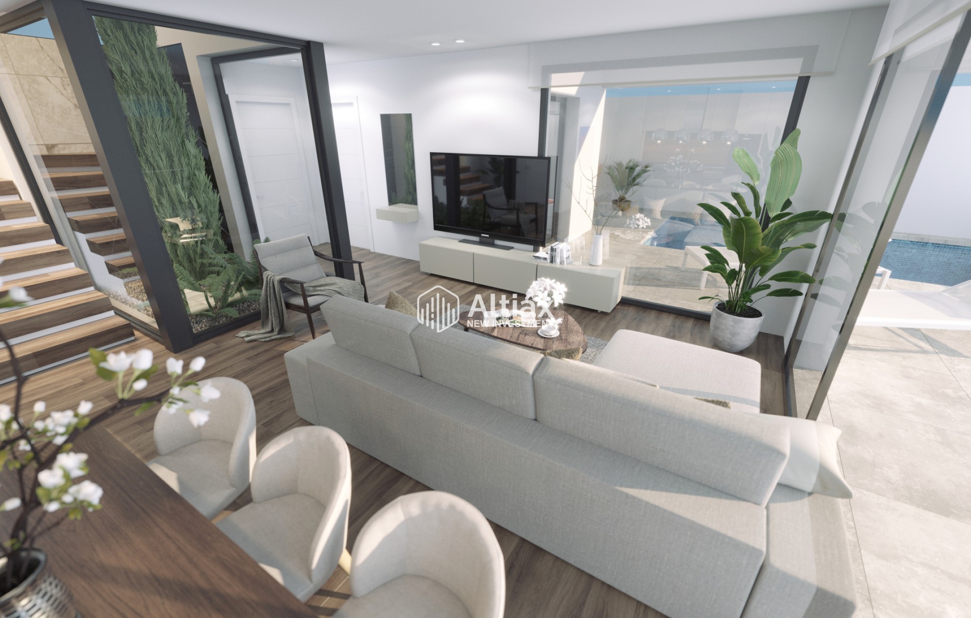 The exteriors of these detached homes in Finestrat are designed to offer a space for relaxation and outdoor enjoyment. Each property features a private garden, ideal for creating a personal oasis of tranquility. Additionally, the spacious terraces allow for the enjoyment of sea views and the Mediterranean climate year-round. The presence of a pergola adds a touch of elegance and functionality, providing shade and an additional space for outdoor entertainment. The inclusion of a private pool in each home ensures moments of leisure and fun in the comfort of your own home.