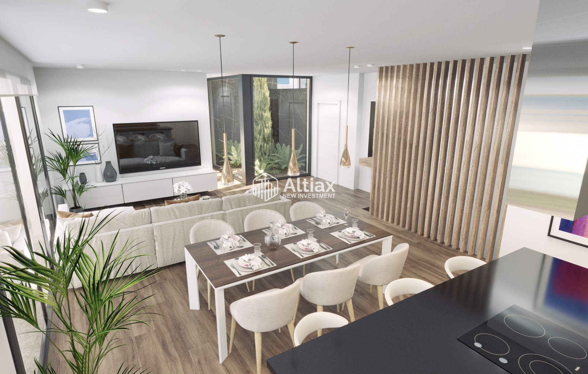The interiors of these detached homes in Finestrat are designed to offer maximum comfort and functionality. With options of 3 bedrooms and 2 or 3 bathrooms, each home is designed to adapt to the needs of its residents. Porcelain stoneware floors add a modern touch and are easy to maintain. The kitchens are equipped with high-quality appliances, facilitating daily life. Built-in wardrobes provide efficient storage space, maintaining the home's order and aesthetics. Additionally, each home includes a garage, ensuring convenience and security for vehicles.