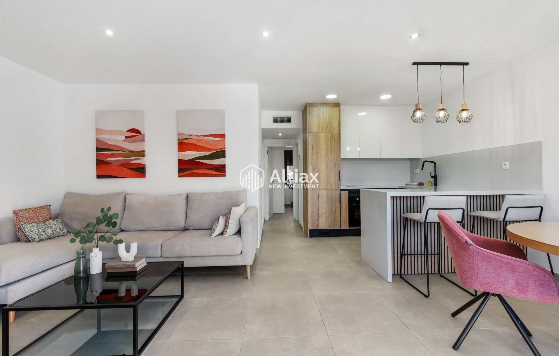 Located in the charming town of Santiago de la Ribera, this residential complex offers a selection of 48 homes including apartments, ground floors, and penthouses. Designed for those seeking a home with sea views, each property is situated just one kilometer from the coast, allowing for the enjoyment of the sea breeze and the relaxing sound of the waves. Proximity to the airport, just 40 kilometers away, facilitates access for frequent travelers, making this location a strategic point for both permanent residents and occasional visitors.