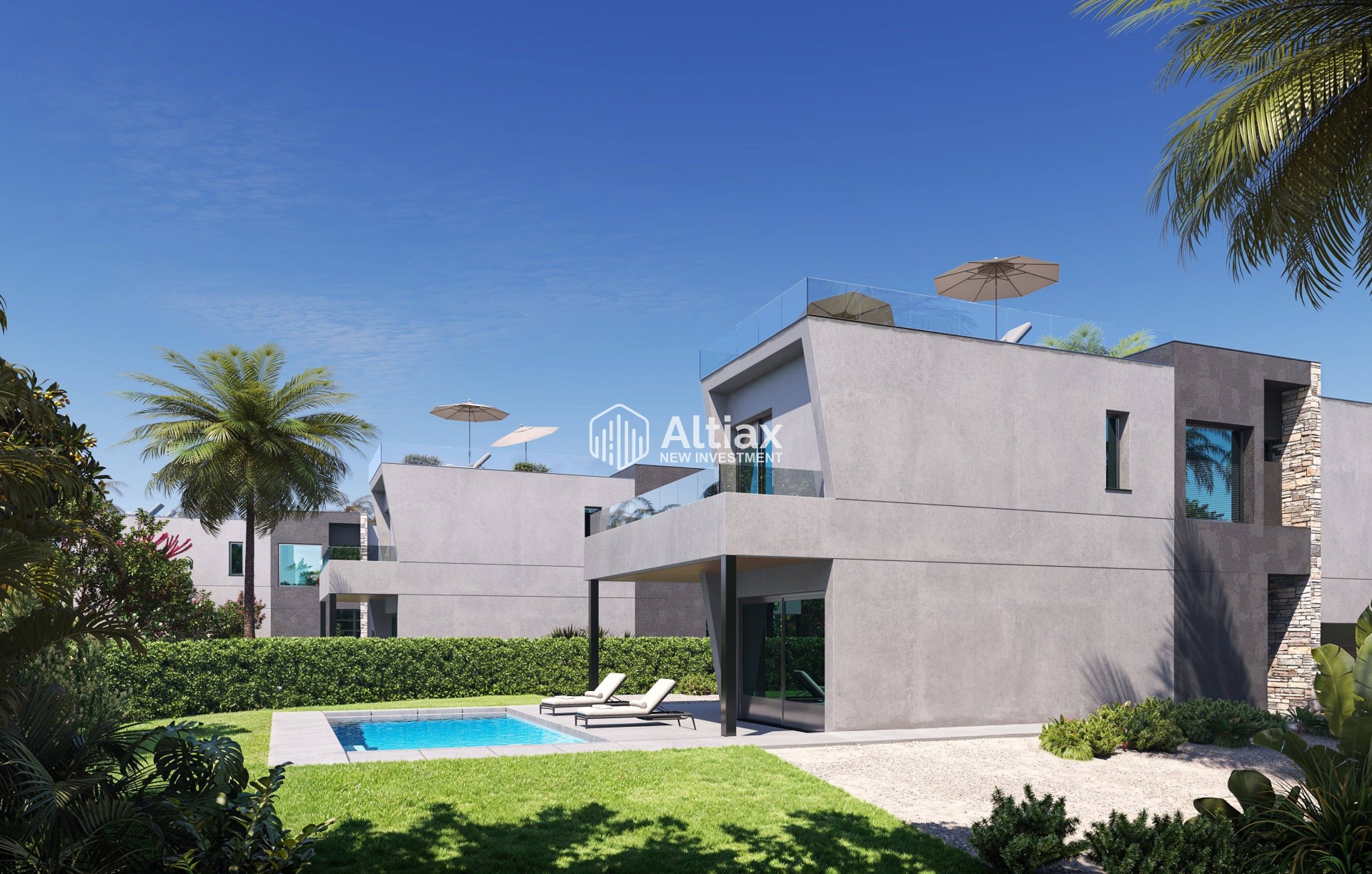 The exteriors of these independent homes in Calpe are designed to maximize enjoyment of the Mediterranean climate. Each property features a private garden, perfect for creating a personal oasis of tranquility or enjoying outdoor activities. The presence of a private pool adds a touch of luxury, allowing for refreshing dips during warm summer days. Additionally, the terraces offer an ideal space for relaxation, sunbathing, or enjoying outdoor meals with views of the natural surroundings. The location, just 2 km from the sea, ensures that beaches are always within reach, while the nearby golf course, 1 km away, offers an additional leisure option.