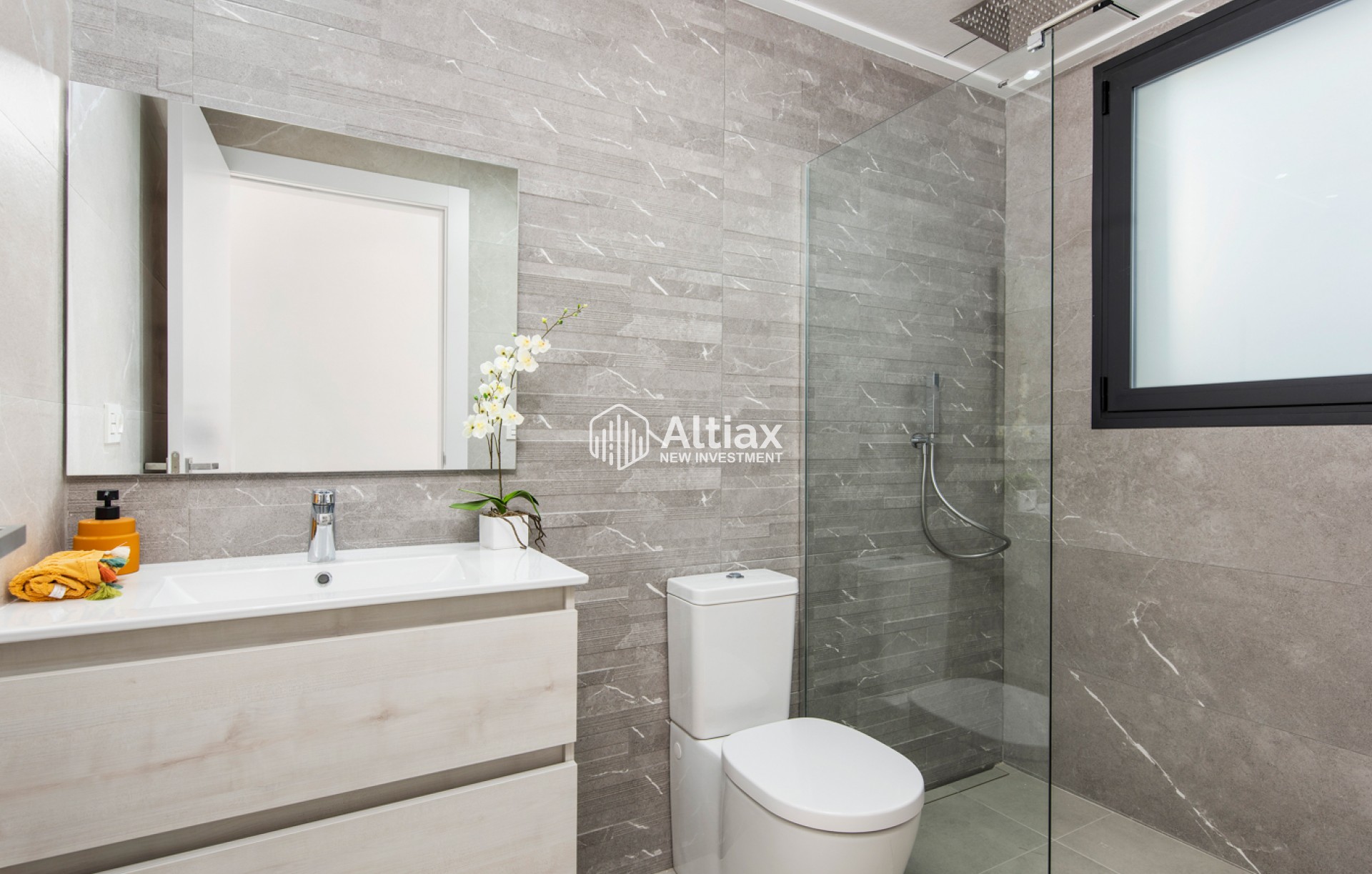 The interiors of these homes in Benijófar are designed to offer maximum comfort and functionality. With a layout that includes 3 bedrooms and 2 bathrooms, each space has been optimized for the residents' well-being. The kitchens are equipped with modern appliances, and the porcelain tile floors add a touch of elegance and durability. Built-in wardrobes provide practical and aesthetic storage solutions, while the pre-installation of air conditioning ensures a pleasant environment year-round. These elements combine to create a cozy and contemporary home.