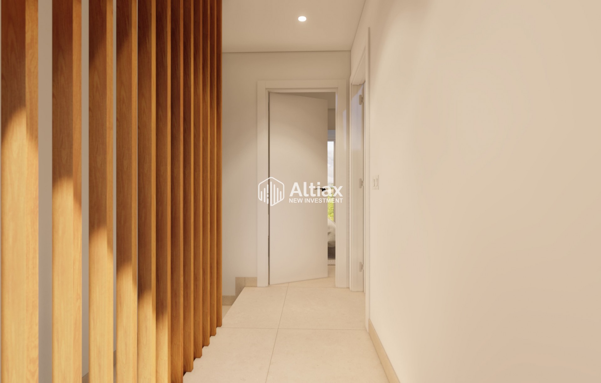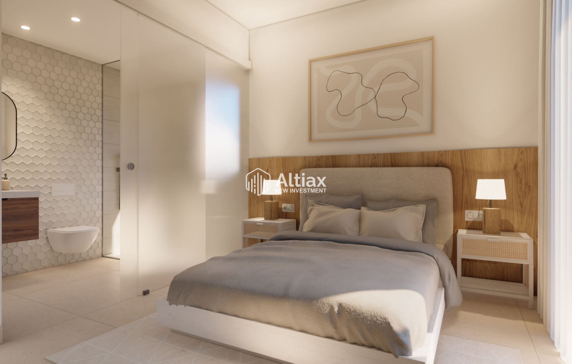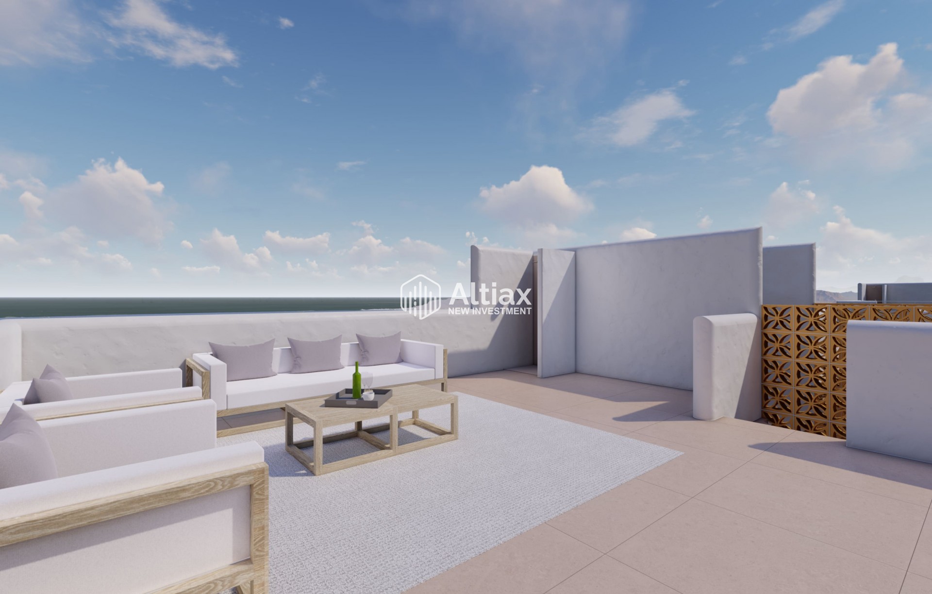 The outdoor areas of these homes have been designed to maximize enjoyment of the Mediterranean climate. Each villa features a private garden, perfect for creating a personal green space or enjoying outdoor activities. The presence of a private pool in each property adds a touch of luxury and exclusivity, allowing residents to refresh and relax in the comfort of their home. Additionally, the terraces offer additional space for leisure, whether for dining al fresco or simply enjoying the sun. The solarium is another standout feature, providing an elevated space from which to appreciate the views of the surroundings and enjoy moments of tranquility.