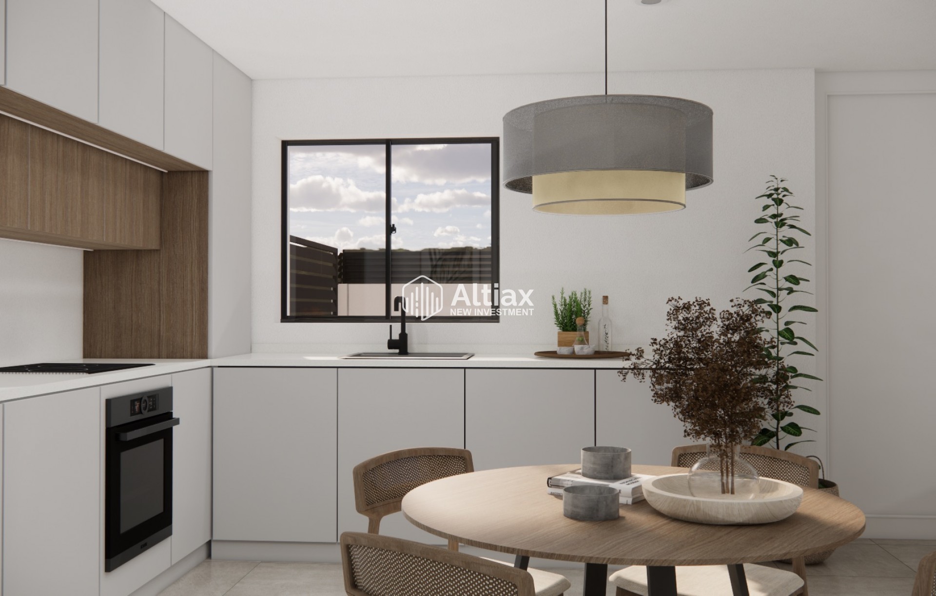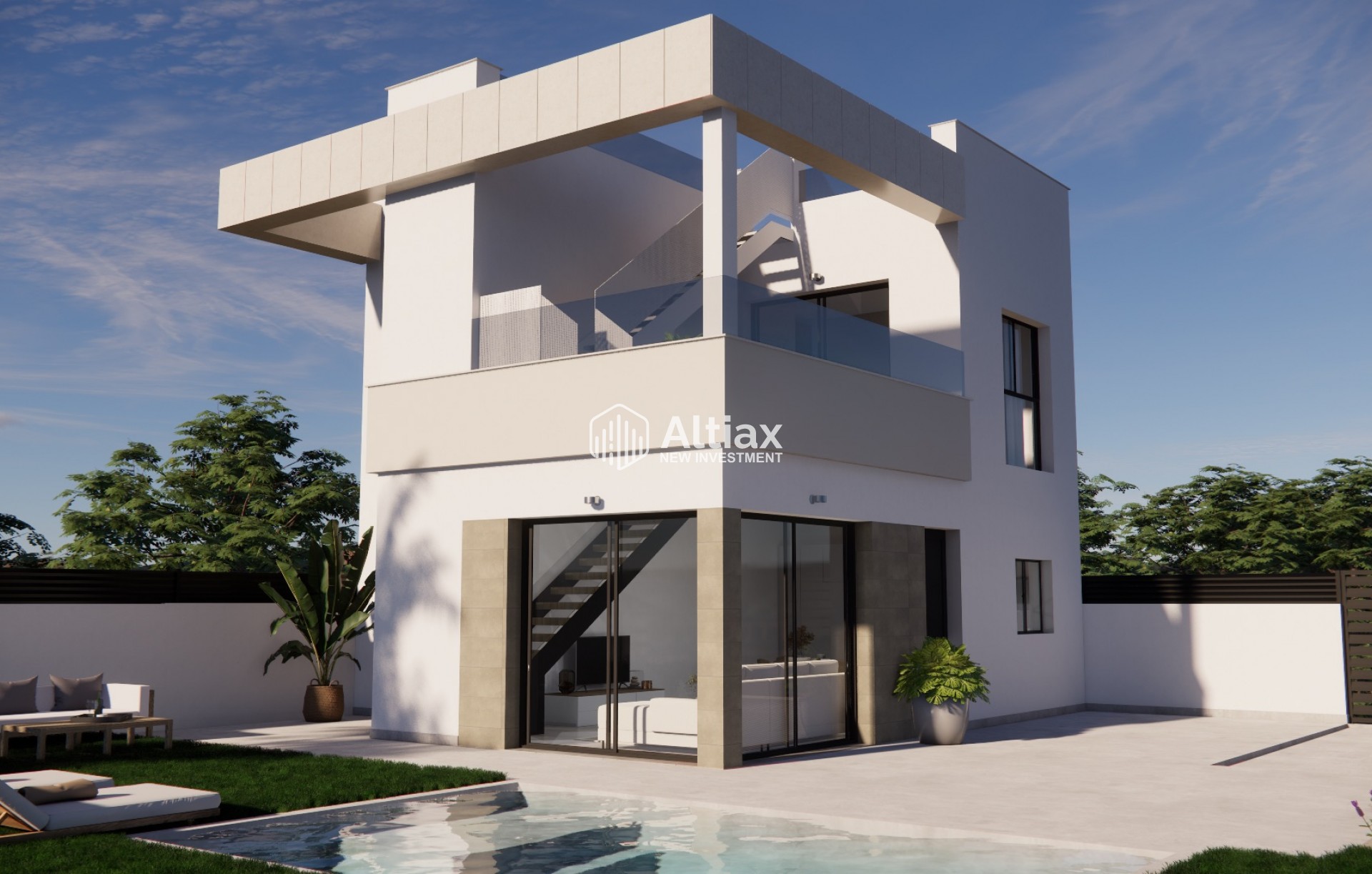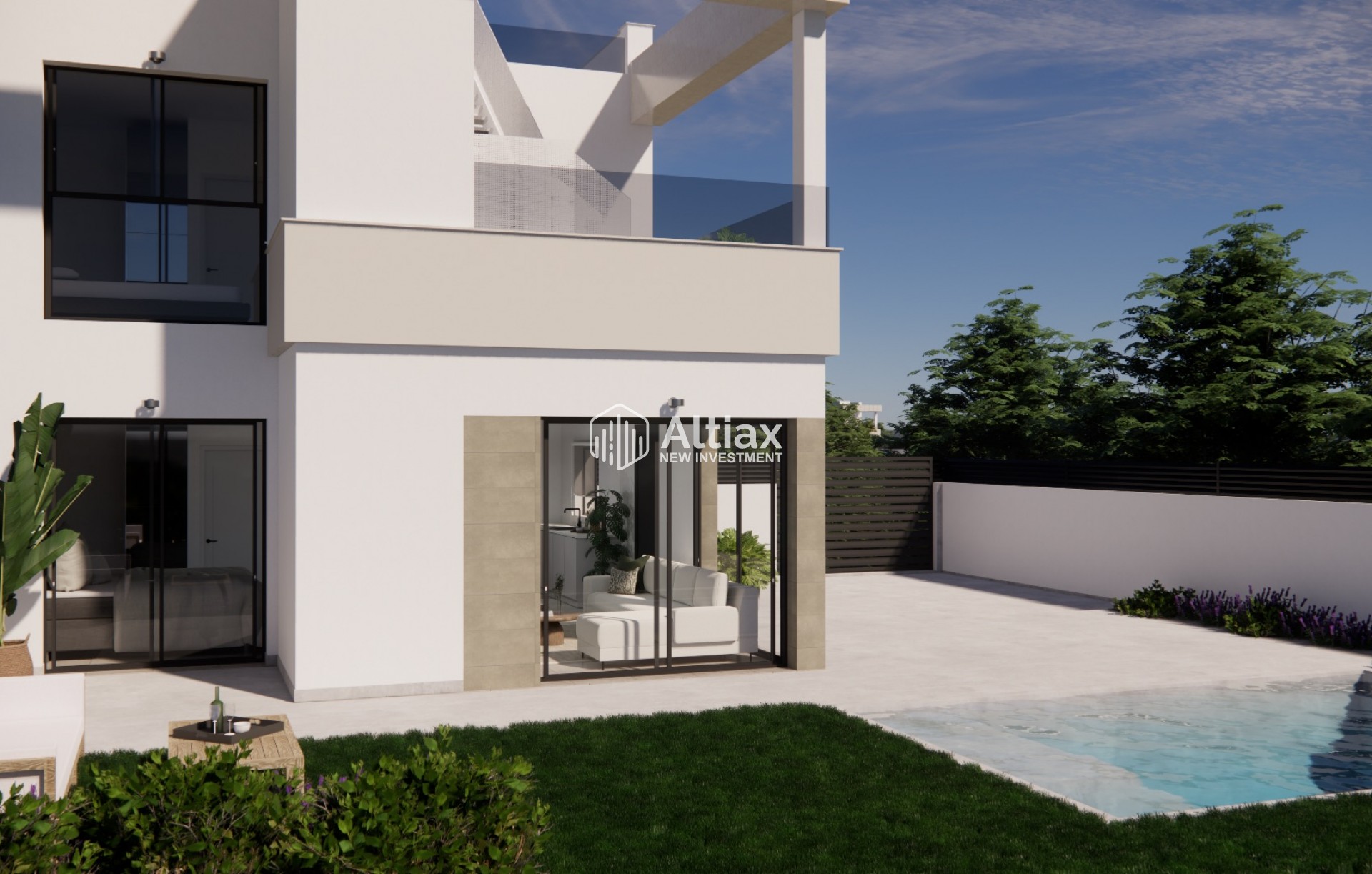 The interior of these townhouses is designed to offer comfort and functionality. With three bedrooms and two bathrooms, each home is intended to accommodate families of various sizes. Built-in wardrobes in the bedrooms optimize storage space, while the pre-installation of air conditioning ensures a pleasant atmosphere year-round. Electric shutters and included kitchen appliances add a touch of modernity and convenience to daily life. The possibility of adding an optional solarium allows for further customization of the space, adapting it to the specific needs of each resident.