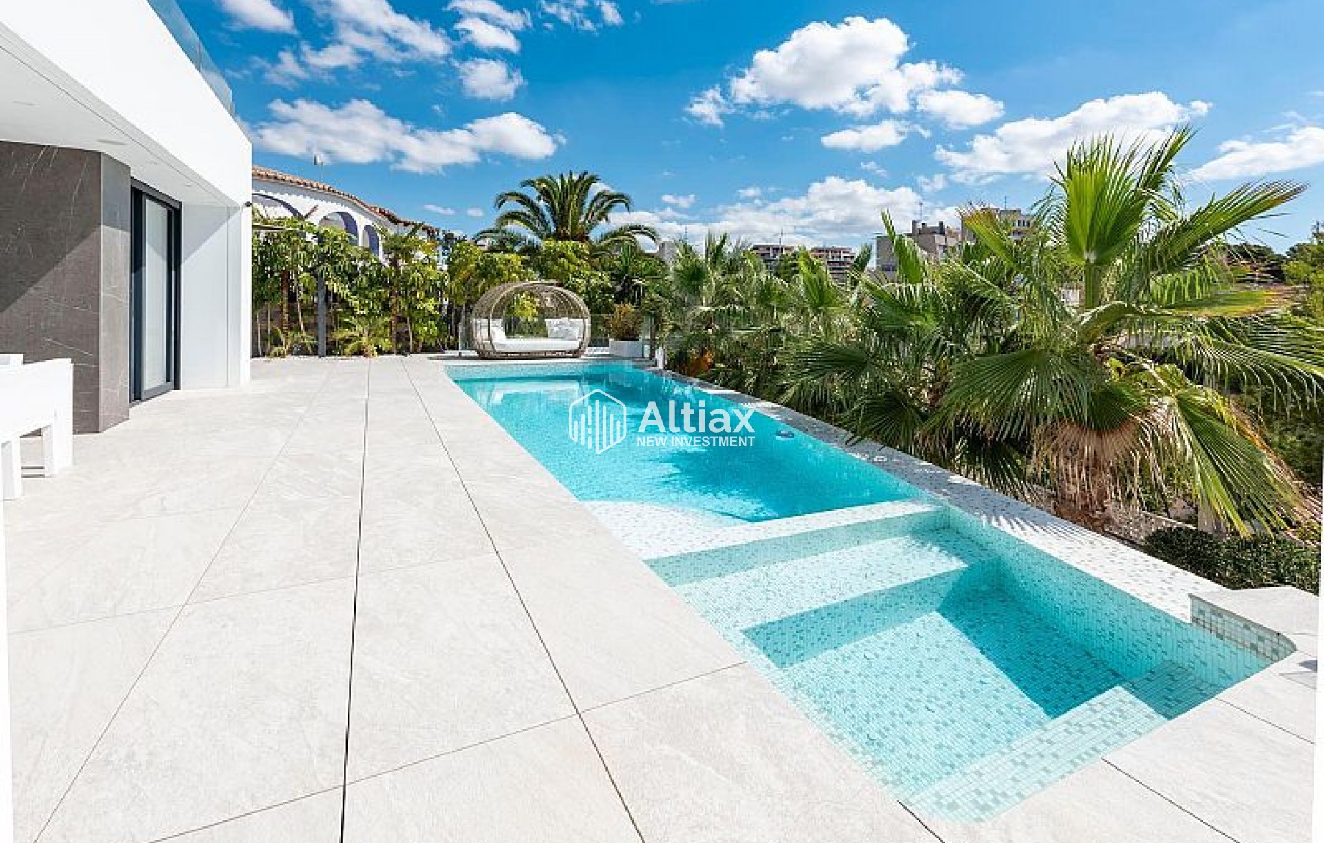 L'extérieur de la villa est conçu pour maximiser le plaisir du climat méditerranéen. Il dispose d'un jardin privé offrant un espace vert parfait pour se détendre ou profiter d'activités en plein air. La terrasse est un endroit idéal pour dîner en plein air ou simplement contempler la vue. De plus, la propriété comprend un solarium, parfait pour bronzer en toute intimité. La piscine privée est une véritable oasis, offrant un lieu rafraîchissant pour nager et se détendre pendant les chaudes journées d'été.