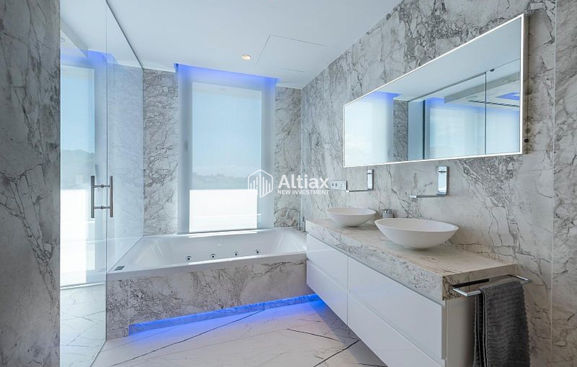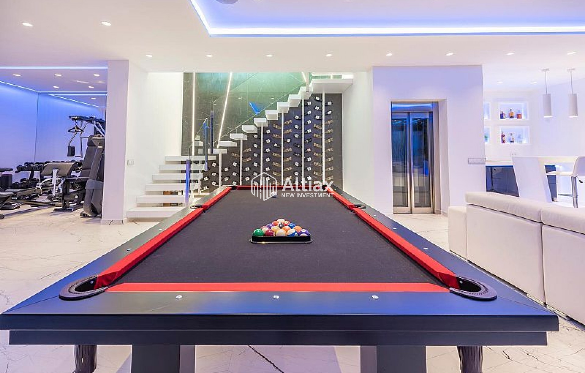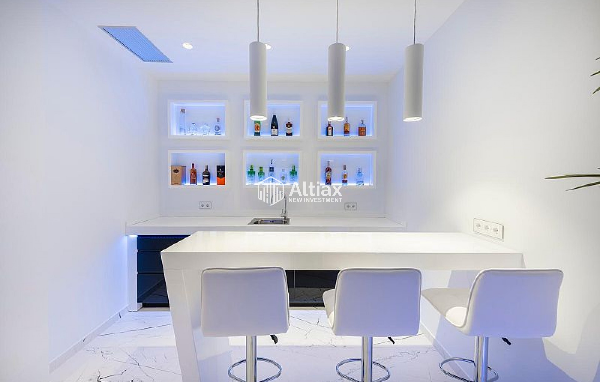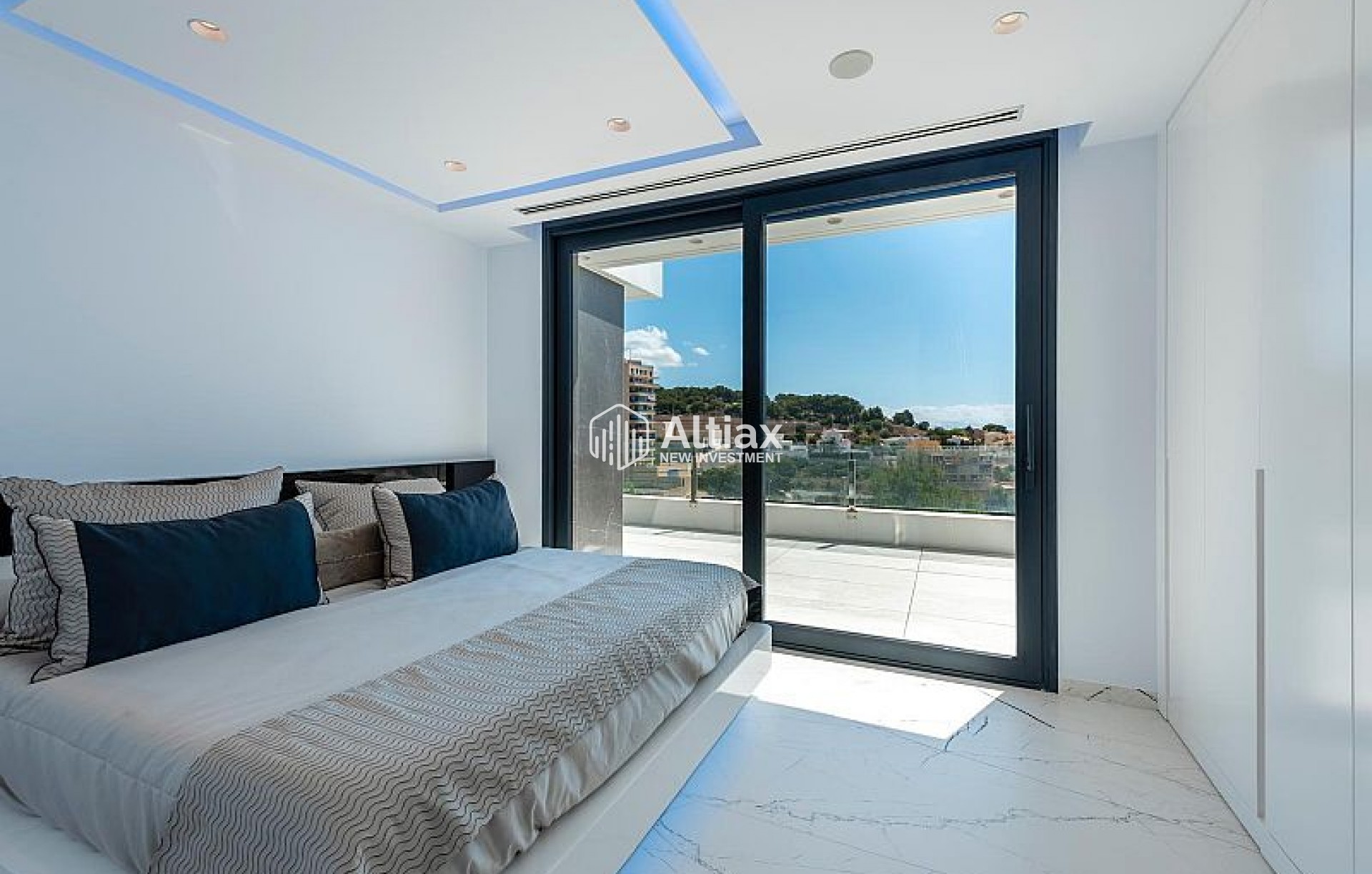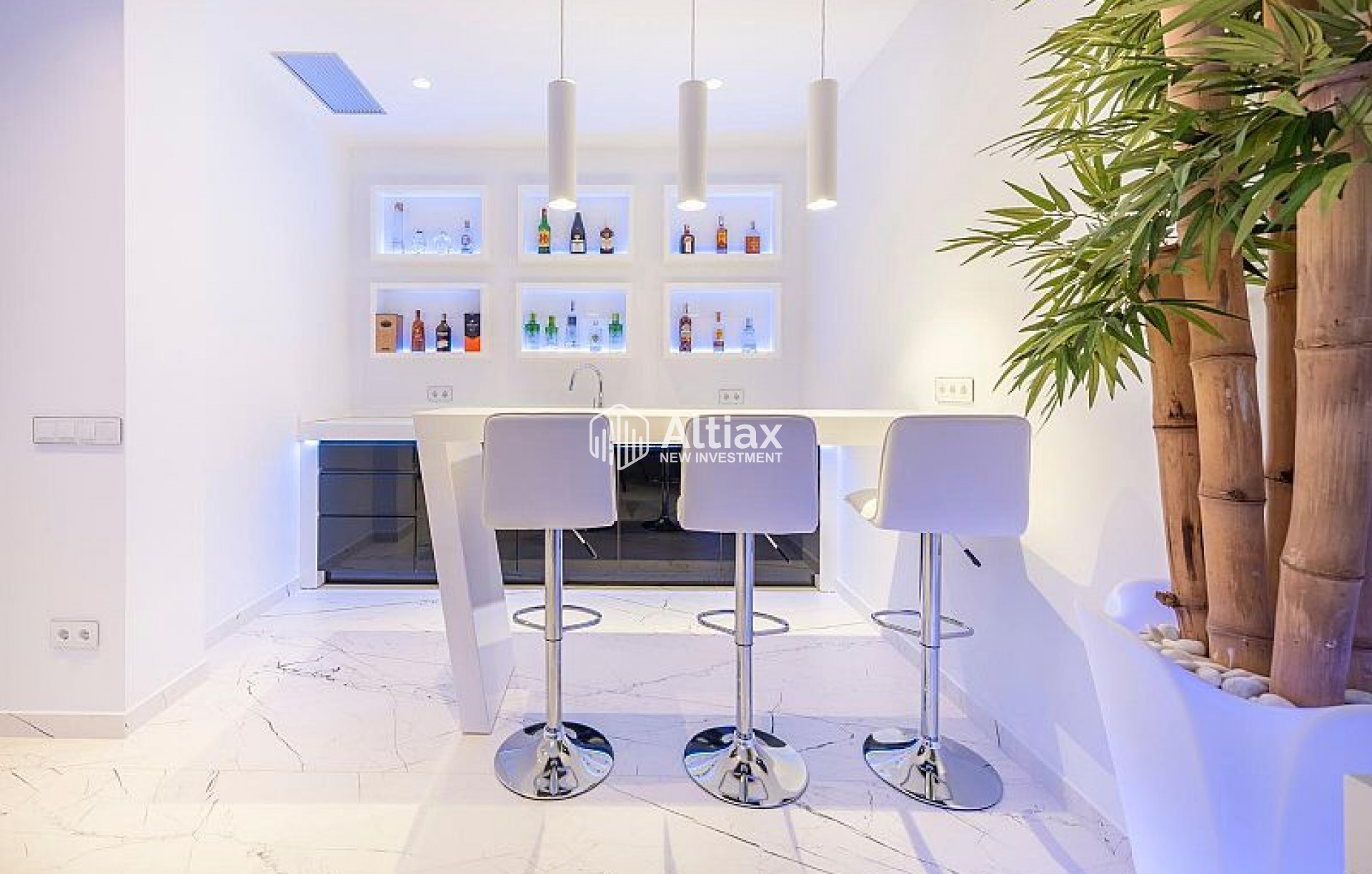 L'intérieur de la villa est équipé de caractéristiques de luxe garantissant un confort maximal. Les sols en marbre ajoutent une touche d'élégance, tandis que le chauffage par le sol assure une température agréable toute l'année. La villa est entièrement meublée et équipée d'appareils haut de gamme, facilitant un déménagement sans tracas. Les volets électriques et le système domotique offrent un confort et une sécurité supplémentaires. De plus, la climatisation assure un environnement frais et confortable pendant les mois les plus chauds. Les placards intégrés dans les chambres offrent un espace de rangement généreux.