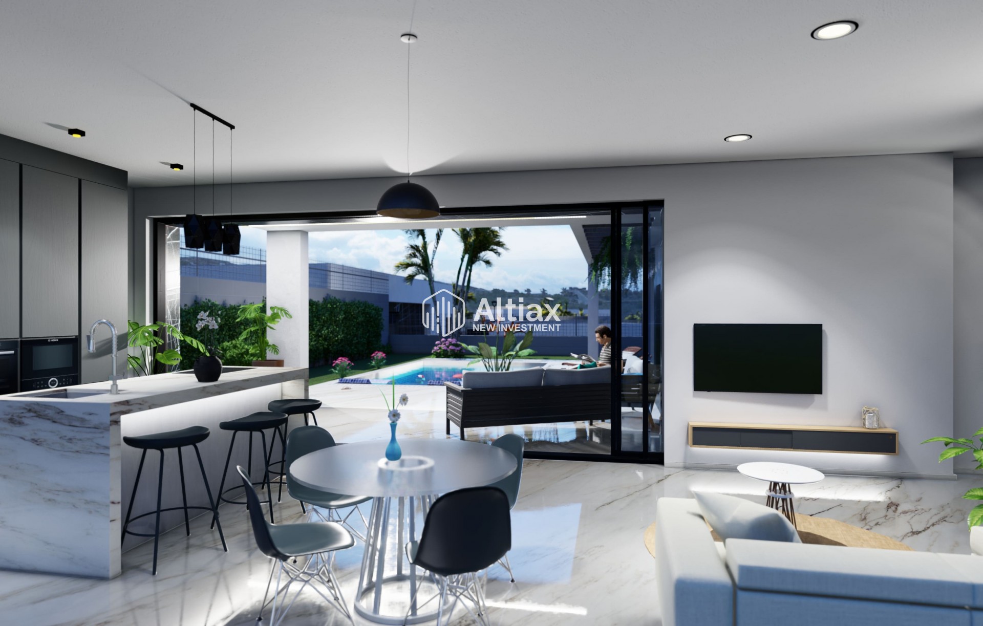 El interior de estas viviendas independientes en Algorfa está diseñado para ofrecer confort y estilo. Con opciones de 3 dormitorios y 1 o 2 baños, las propiedades se adaptan a diferentes necesidades familiares. Los suelos cerámicos aportan un toque moderno y son fáciles de mantener. La cocina está equipada con electrodomésticos de alta calidad, y el sistema de aire acondicionado garantiza una temperatura agradable durante todo el año. Los armarios empotrados ofrecen un almacenamiento eficiente, mientras que el videoportero añade un nivel extra de seguridad y comodidad. La preinstalación de aire acondicionado permite una personalización adicional según las preferencias del propietario.