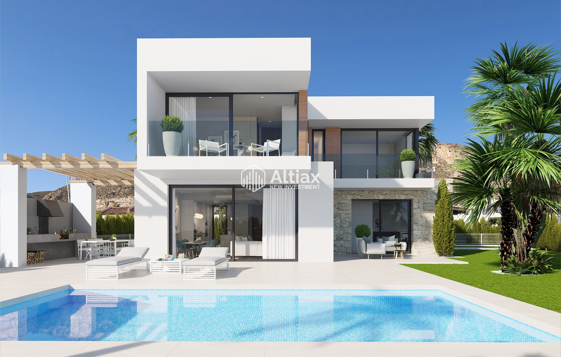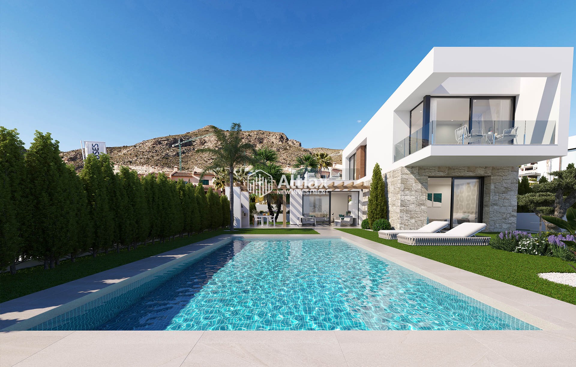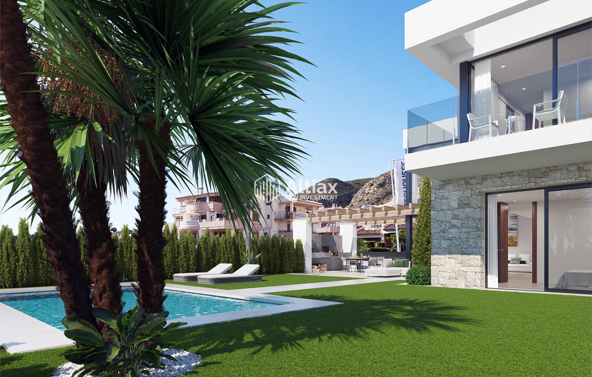 Los exteriores de estas propiedades en Finestrat están diseñados para maximizar el disfrute del entorno natural. Cada vivienda cuenta con un jardín privado, perfecto para actividades al aire libre y momentos de relajación. Las terrazas amplias ofrecen un espacio adicional para disfrutar de las vistas al mar y del clima mediterráneo. Además, cada propiedad está equipada con una piscina privada, ideal para refrescarse durante los cálidos días de verano. La presencia de pérgolas añade un toque de elegancia y funcionalidad, proporcionando sombra y un espacio acogedor para reuniones al aire libre.