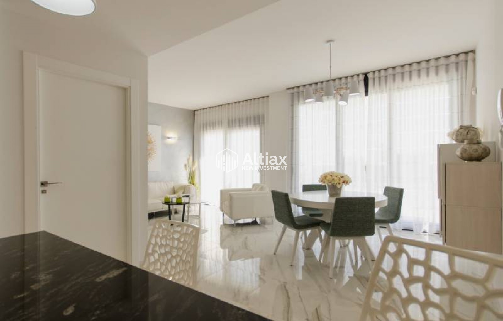 El interior de estas propiedades en Orihuela está diseñado con un enfoque en la comodidad y la funcionalidad. Las viviendas ofrecen opciones de 2, 3 o 4 dormitorios, y un número equivalente de baños, asegurando espacio suficiente para familias de diferentes tamaños. Cada propiedad está equipada con aire acondicionado, garantizando un ambiente agradable durante todo el año. Los armarios empotrados proporcionan un almacenamiento eficiente, mientras que las persianas eléctricas añaden un toque de modernidad y comodidad. Las propiedades vienen completamente amuebladas, incluyendo electrodomésticos de alta calidad, lo que facilita la mudanza y el inicio de una nueva vida. El videoportero asegura un nivel adicional de seguridad y tranquilidad para los residentes.