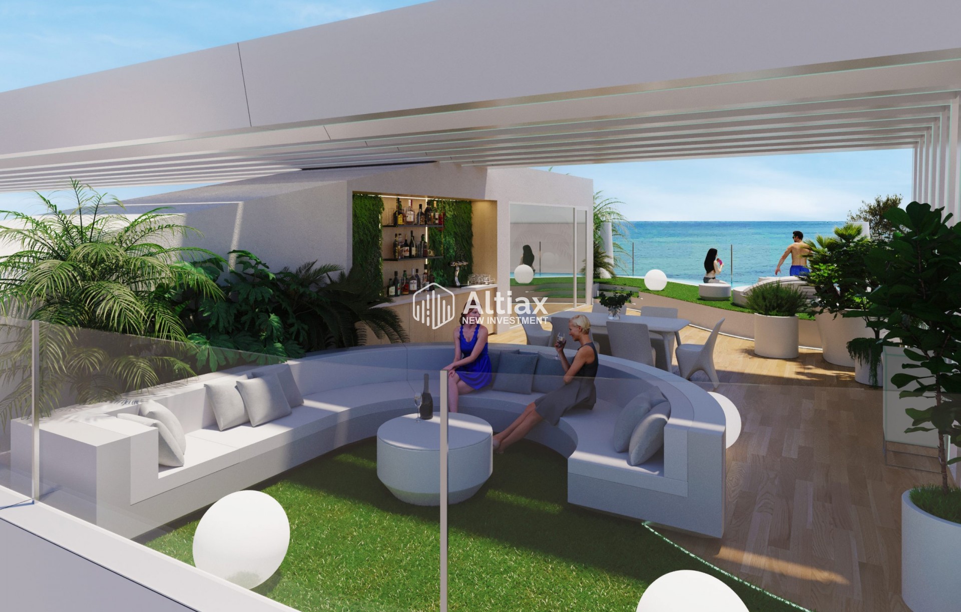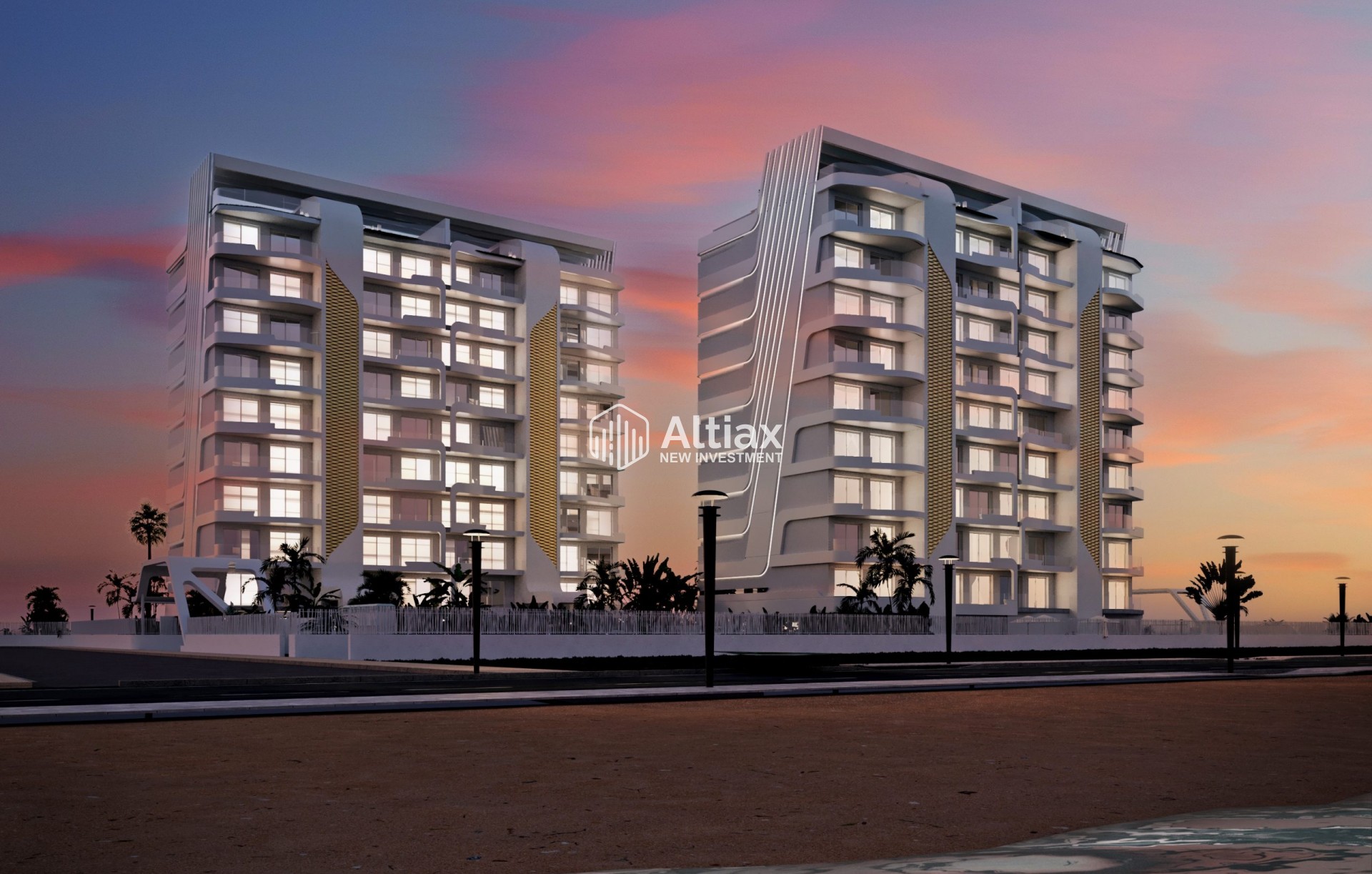Los exteriores de este residencial están diseñados para maximizar el disfrute del entorno natural. Cada propiedad cuenta con un jardín privado, ideal para relajarse al aire libre. Las terrazas amplias ofrecen un espacio adicional para disfrutar de las vistas al mar y del clima mediterráneo. Además, algunas tipologías incluyen un solárium, proporcionando un espacio exclusivo para tomar el sol o disfrutar de momentos de tranquilidad. La ubicación en primera línea de playa asegura que los residentes puedan disfrutar de la brisa marina y de vistas ininterrumpidas al horizonte.