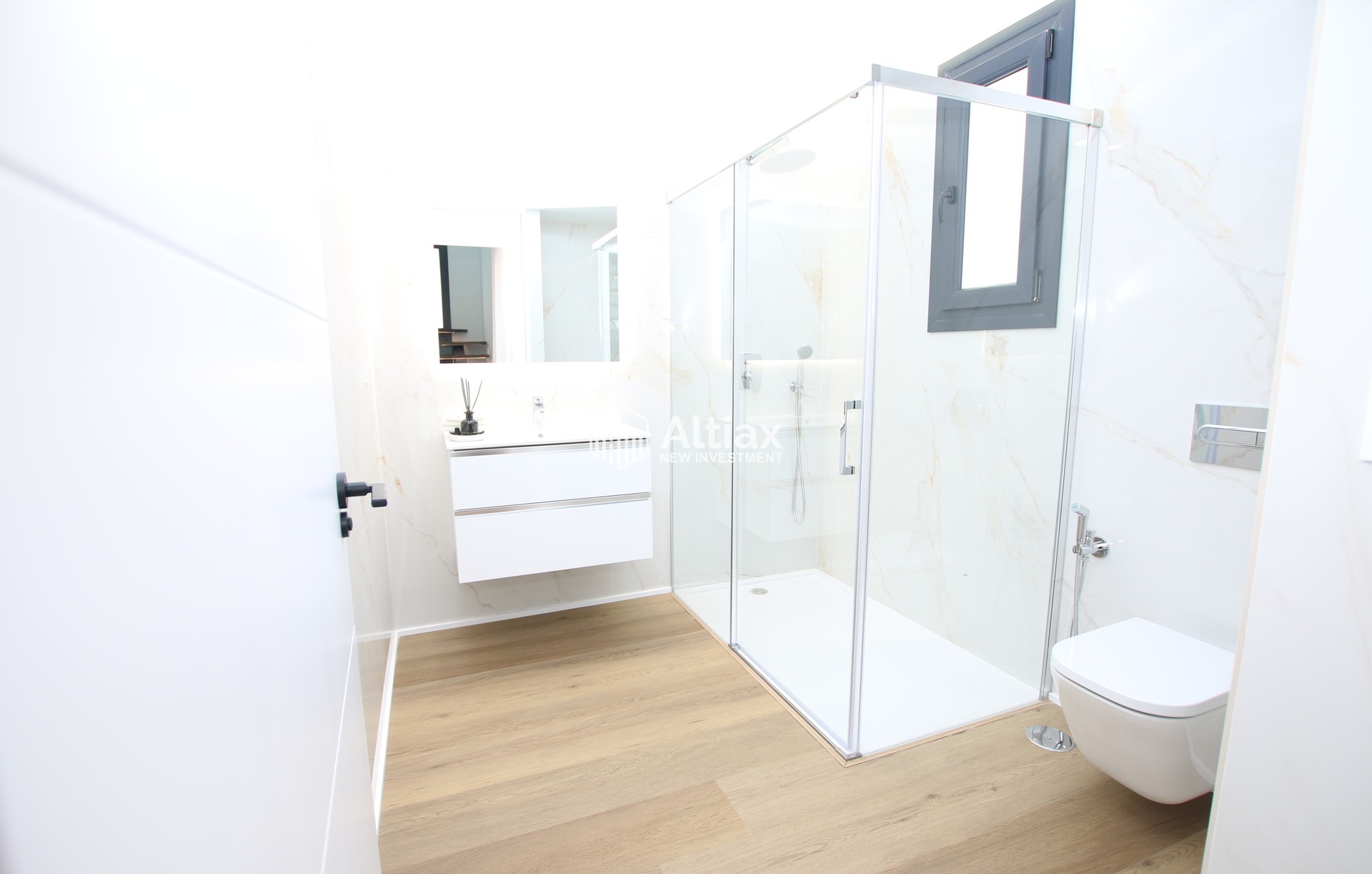 The interior of these detached homes is designed with attention to detail and functionality. Ceramic floors add a modern touch and are easy to maintain. The homes feature three bedrooms, all equipped with built-in wardrobes that optimize storage space. The two bathrooms are designed to offer comfort and style, with underfloor heating for extra comfort during the colder months. Pre-installation of air conditioning ensures the temperature is always just right. Additionally, each home includes a garage, adding convenience and security to daily life.