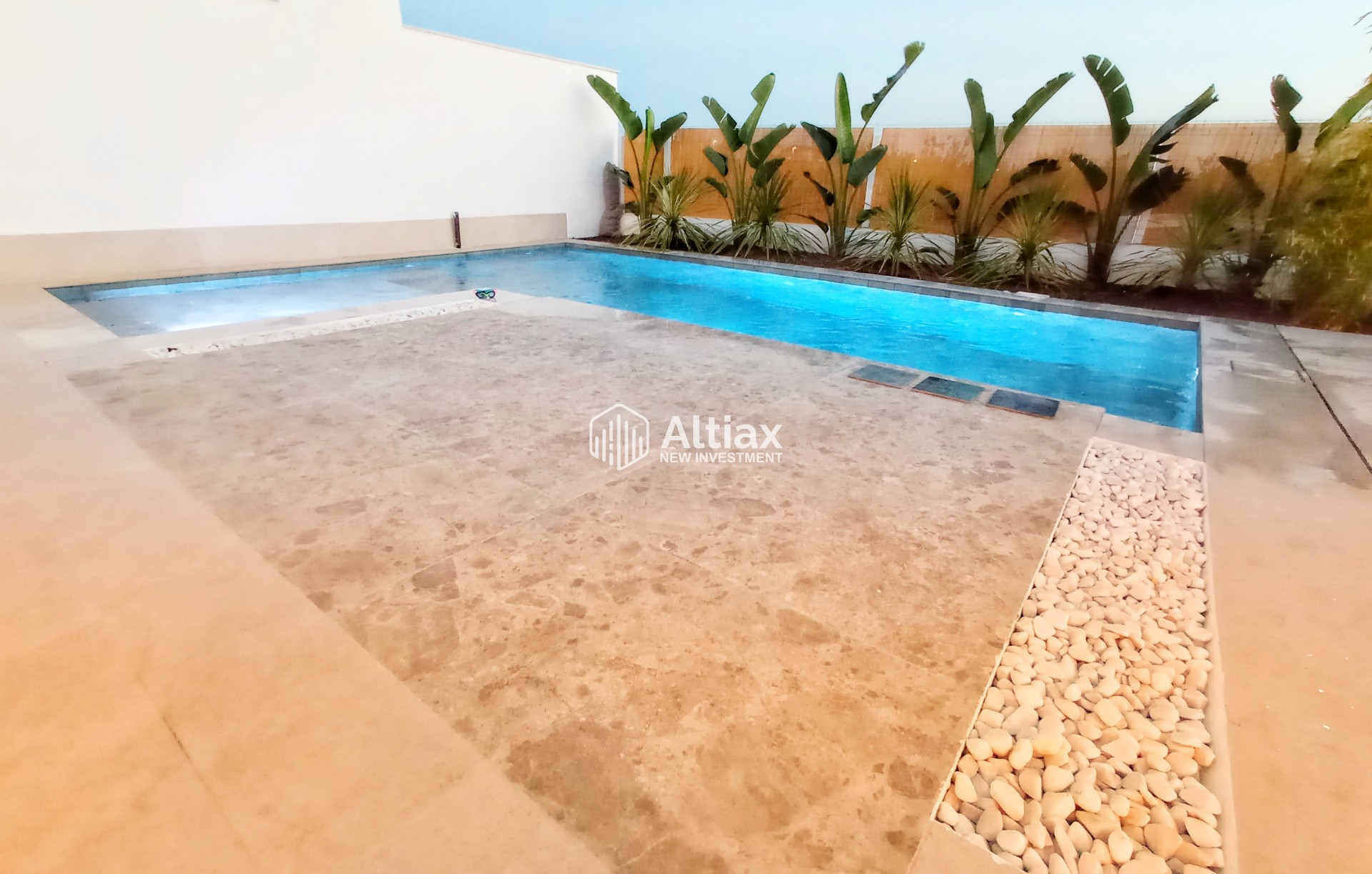 The outdoor spaces of these properties in Benijófar are a true oasis of tranquility. Each home features a private pool, ideal for enjoying the Mediterranean climate. Additionally, the terraces and solariums offer perfect spaces for relaxation and outdoor entertainment. The presence of pergolas adds a touch of elegance and functionality, providing shade and style to the outdoor areas. These elements combine to create a welcoming and sophisticated environment, where every detail has been thought out to offer an unparalleled outdoor living experience.