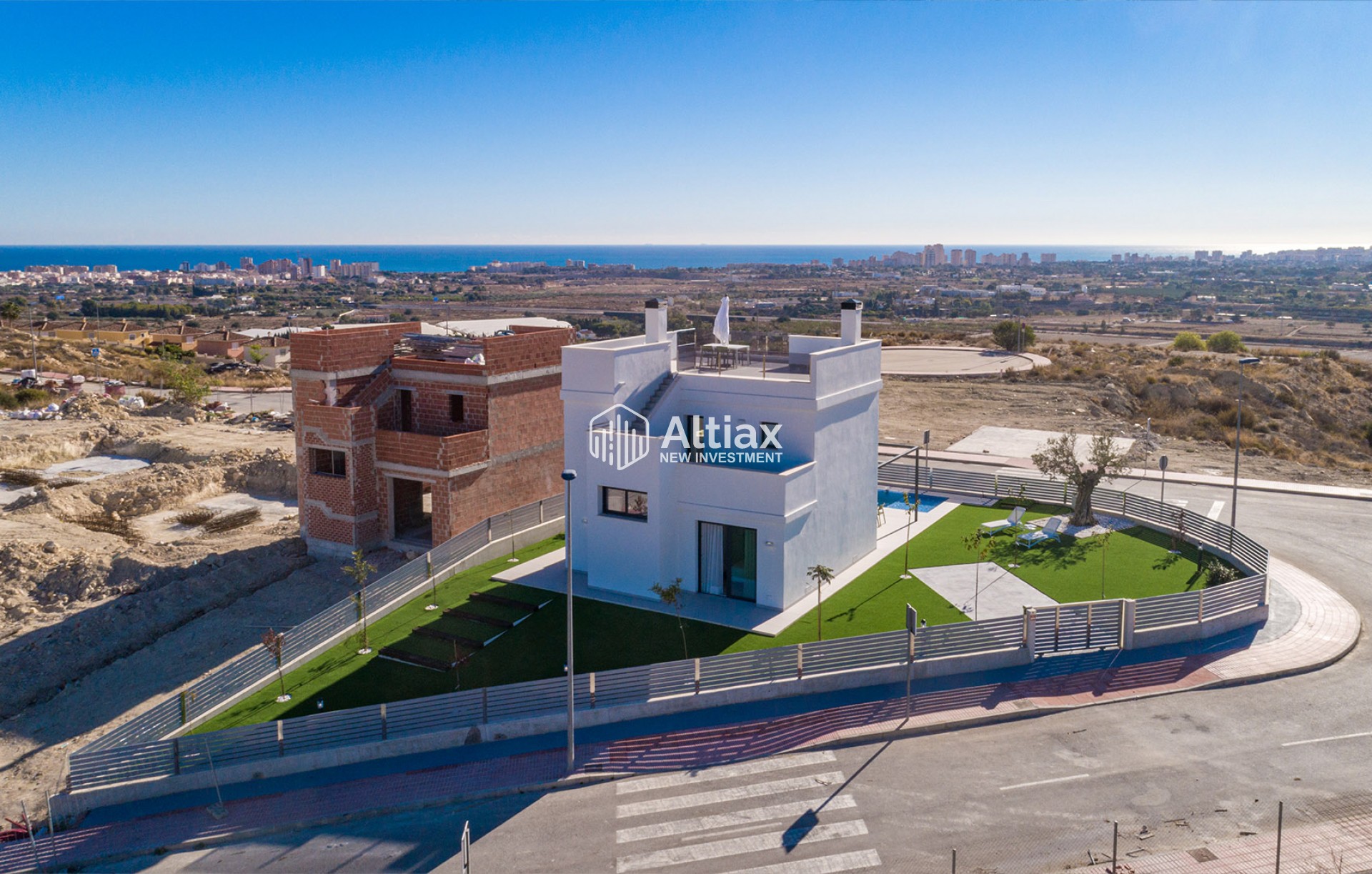 Les extérieurs de ces maisons à Mutxamel sont conçus pour maximiser le plaisir du climat méditerranéen. Chaque propriété dispose d'un jardin privé, parfait pour créer une oasis personnelle de tranquillité. Les terrasses offrent un espace extérieur supplémentaire, idéal pour les dîners en plein air ou simplement pour se détendre en profitant de la vue sur la mer. De plus, chaque maison dispose d'une piscine privée, offrant un lieu rafraîchissant pour profiter des chaudes journées d'été. Le solarium est un autre atout, offrant un espace surélevé pour bronzer en toute intimité.