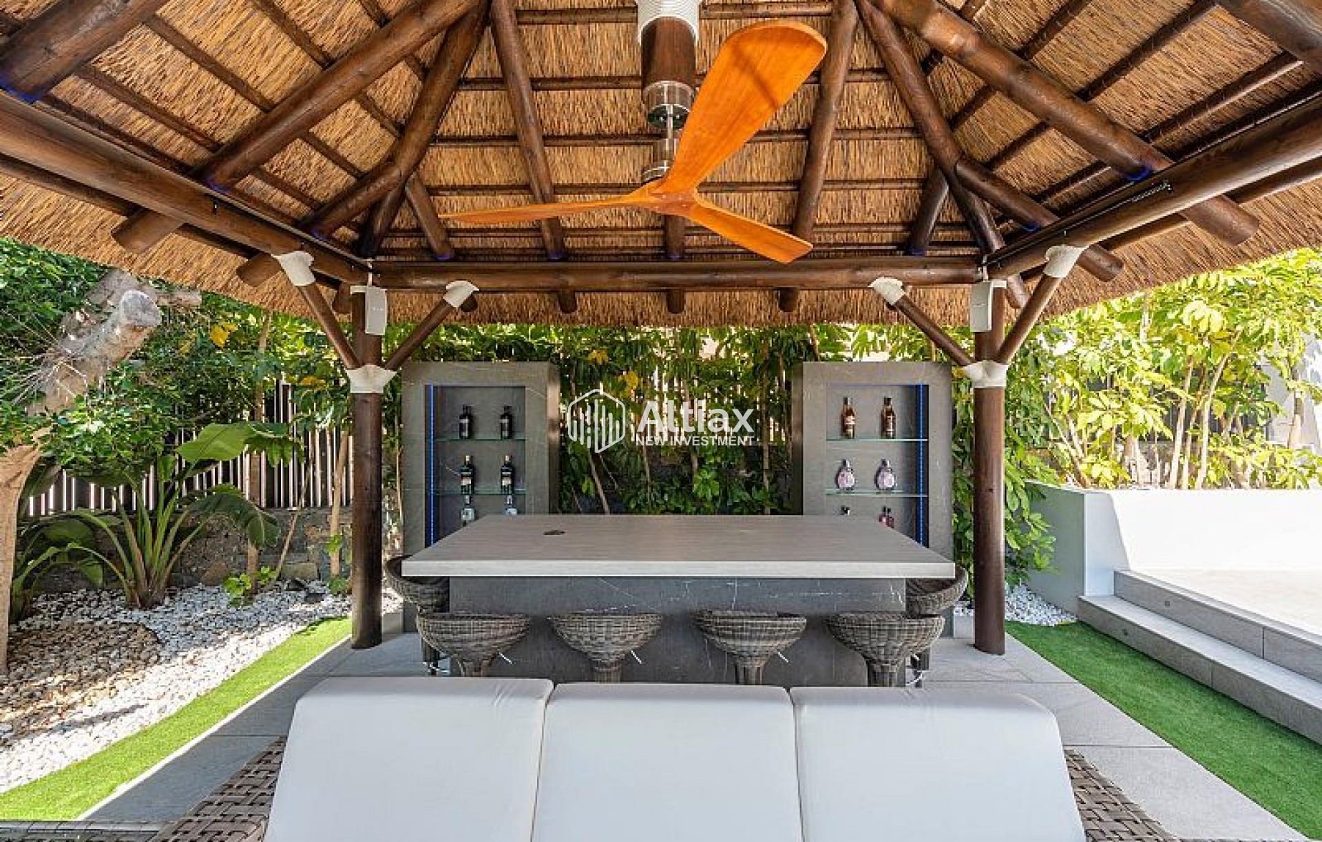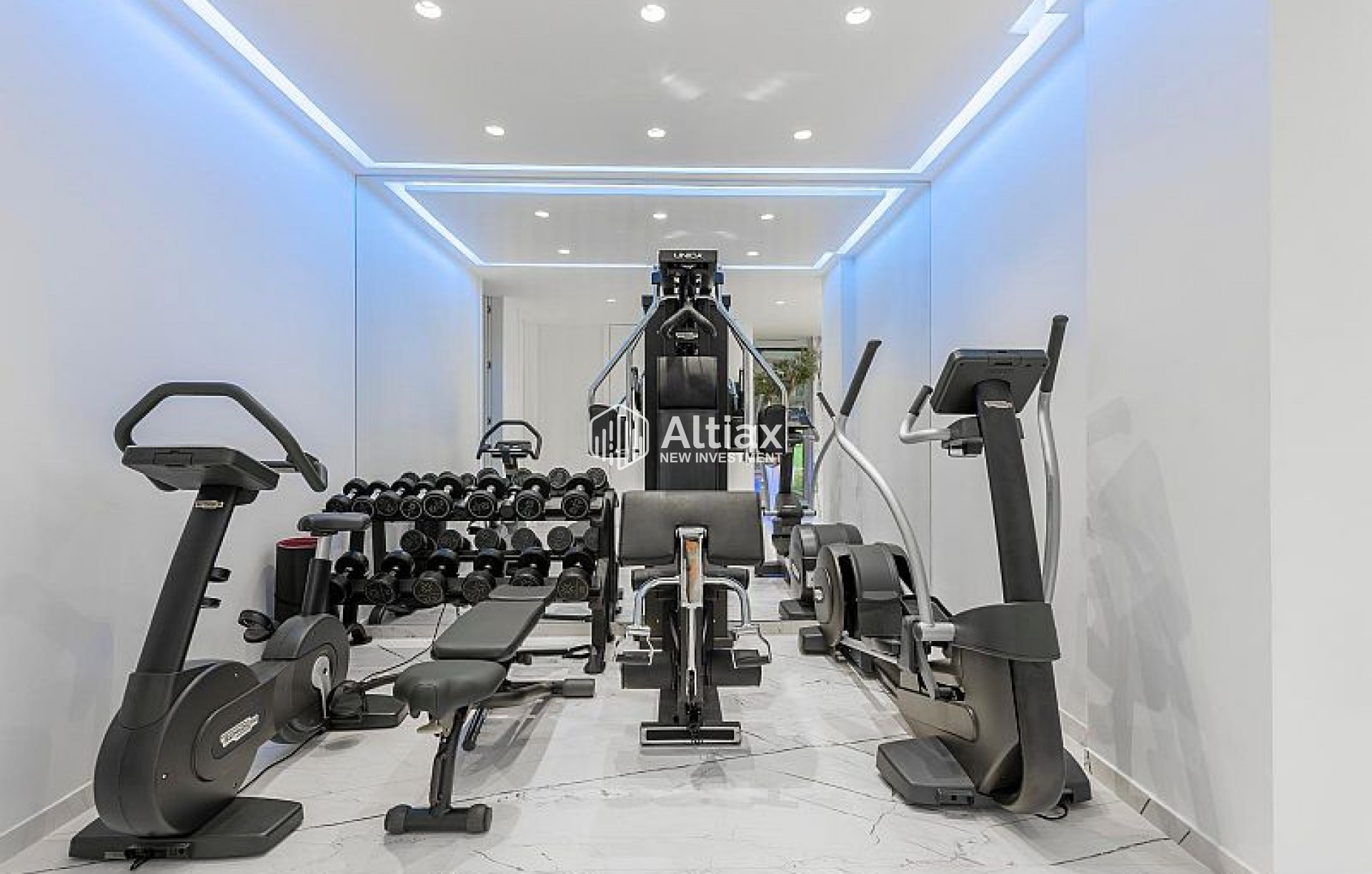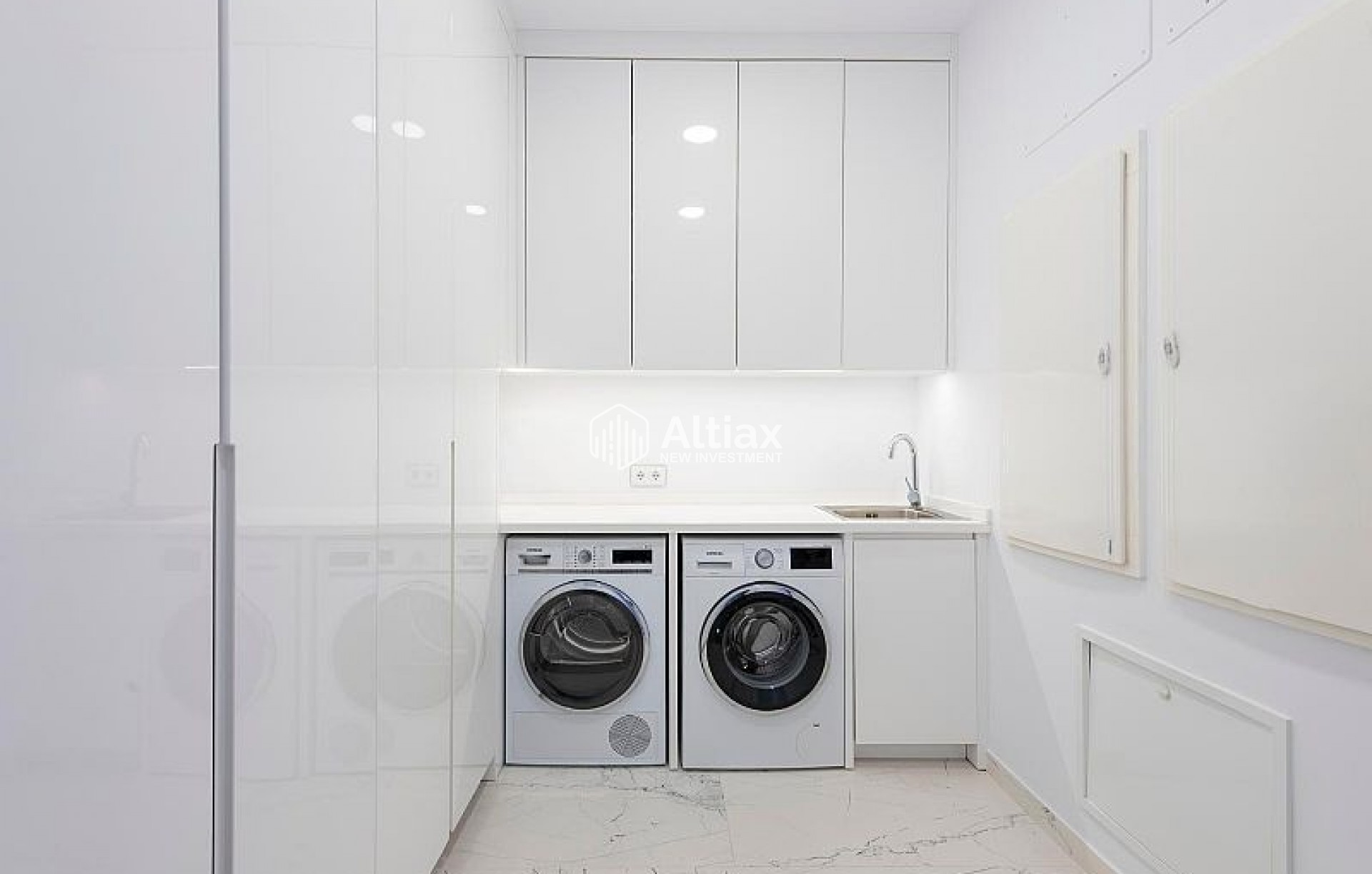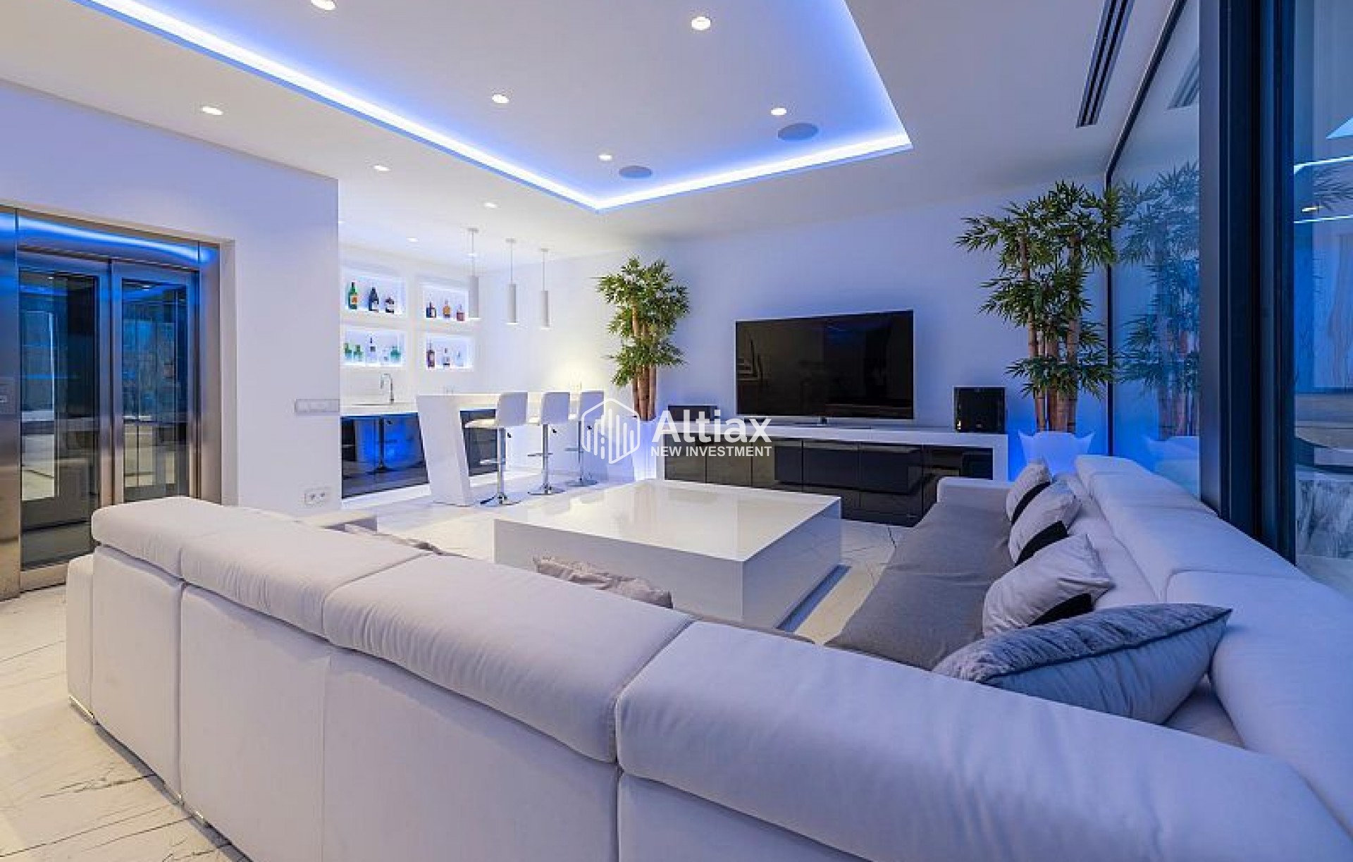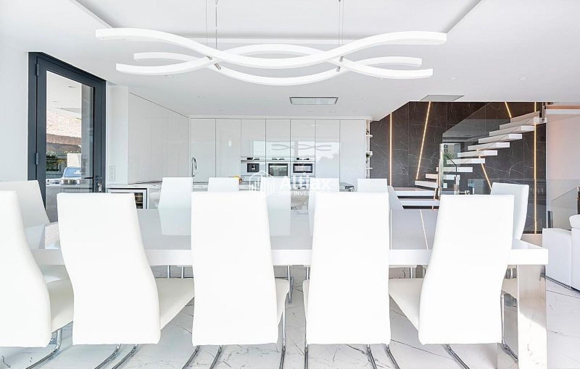 L'intérieur de la villa est équipé de caractéristiques de luxe garantissant un confort maximal. Les sols en marbre ajoutent une touche d'élégance, tandis que le chauffage par le sol assure une température agréable toute l'année. La villa est entièrement meublée et équipée d'appareils haut de gamme, facilitant un déménagement sans tracas. Les volets électriques et le système domotique offrent un confort et une sécurité supplémentaires. De plus, la climatisation assure un environnement frais et confortable pendant les mois les plus chauds. Les placards intégrés dans les chambres offrent un espace de rangement généreux.