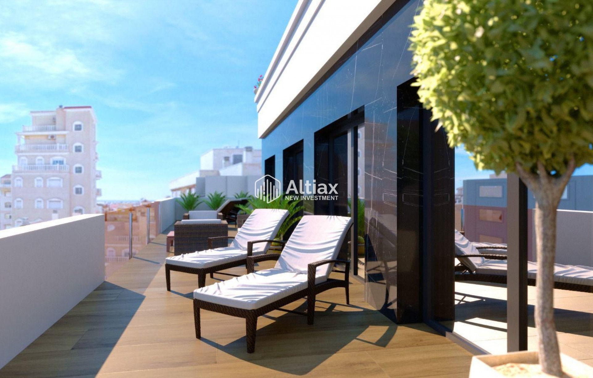 La résidence dispose d'une série d'espaces communs qui enrichissent l'expérience de vie de ses résidents. Les jardins communautaires offrent un espace vert pour se détendre et socialiser. La piscine communautaire est parfaite pour se rafraîchir pendant les journées chaudes, tandis que le jacuzzi offre un lieu pour se détendre et se déstresser. Les résidents peuvent également rester actifs dans la salle de sport communautaire, équipée de tout le nécessaire pour un entraînement complet. De plus, le solarium communautaire est un espace idéal pour profiter du soleil et des vues panoramiques.