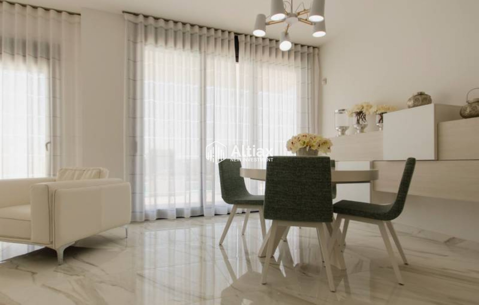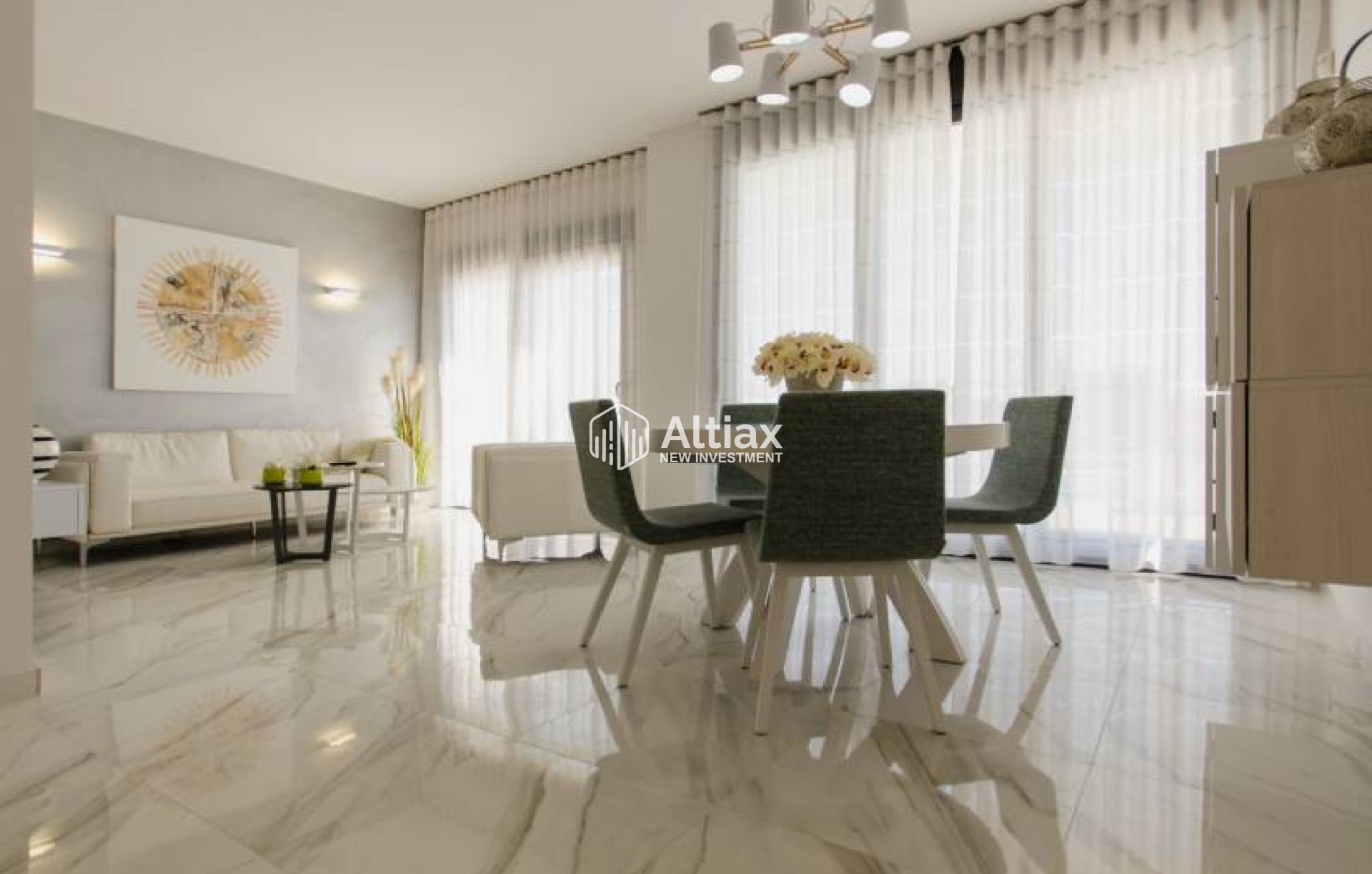 El interior de estas propiedades en Orihuela está diseñado con un enfoque en la comodidad y la funcionalidad. Las viviendas ofrecen opciones de 2, 3 o 4 dormitorios, y un número equivalente de baños, asegurando espacio suficiente para familias de diferentes tamaños. Cada propiedad está equipada con aire acondicionado, garantizando un ambiente agradable durante todo el año. Los armarios empotrados proporcionan un almacenamiento eficiente, mientras que las persianas eléctricas añaden un toque de modernidad y comodidad. Las propiedades vienen completamente amuebladas, incluyendo electrodomésticos de alta calidad, lo que facilita la mudanza y el inicio de una nueva vida. El videoportero asegura un nivel adicional de seguridad y tranquilidad para los residentes.