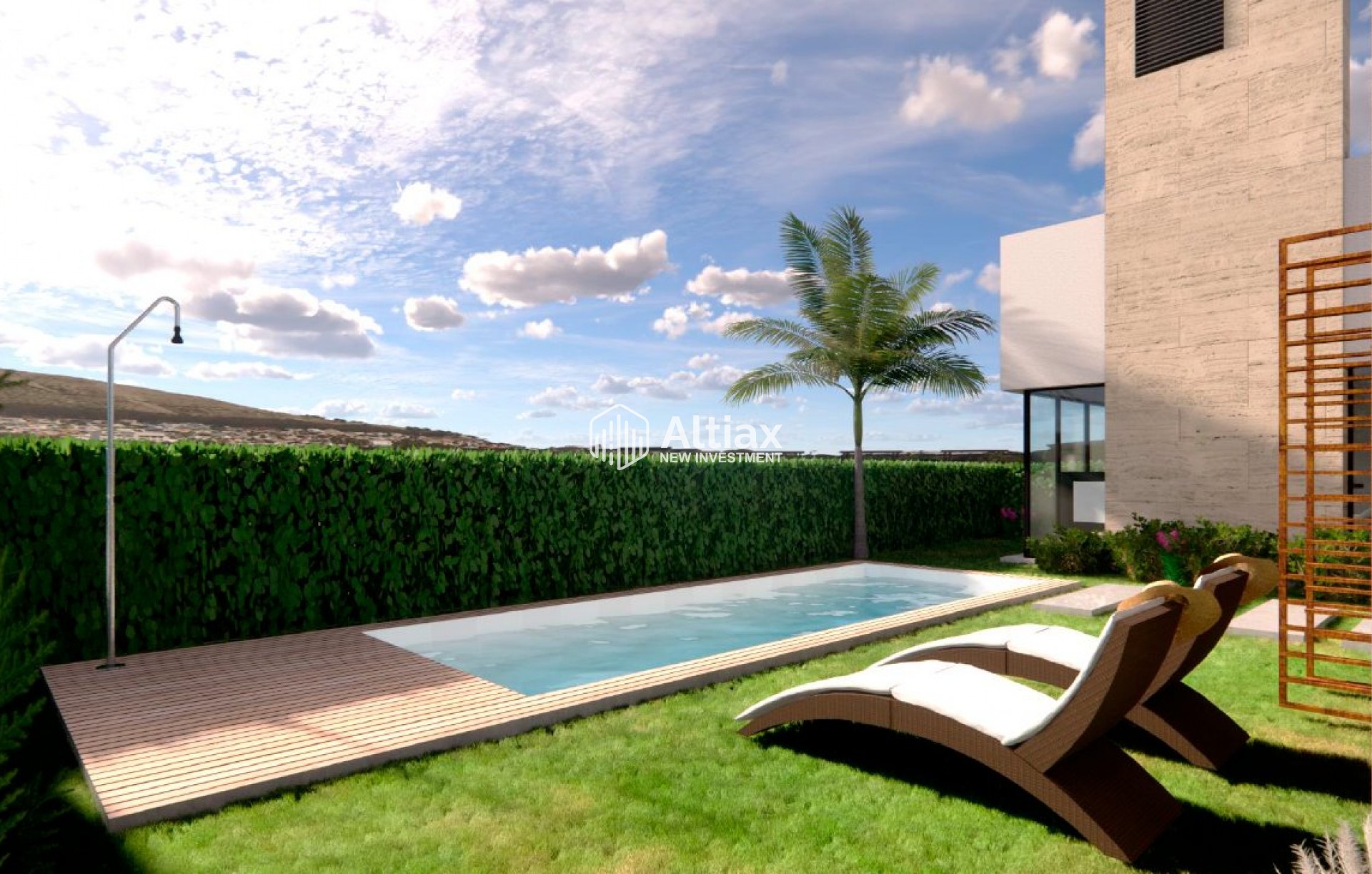 El diseño exterior de estas viviendas independientes en Torre-Pacheco destaca por su elegancia y funcionalidad. Cada propiedad cuenta con un jardín privado, perfecto para disfrutar de momentos al aire libre en un entorno íntimo. La terraza ofrece un espacio adicional para el ocio y el entretenimiento, permitiendo disfrutar del clima mediterráneo durante todo el año. Además, cada vivienda dispone de un solárium, ideal para relajarse y tomar el sol en la privacidad de su hogar. La inclusión de una piscina privada añade un toque de lujo, proporcionando un lugar refrescante para disfrutar en los días más cálidos.