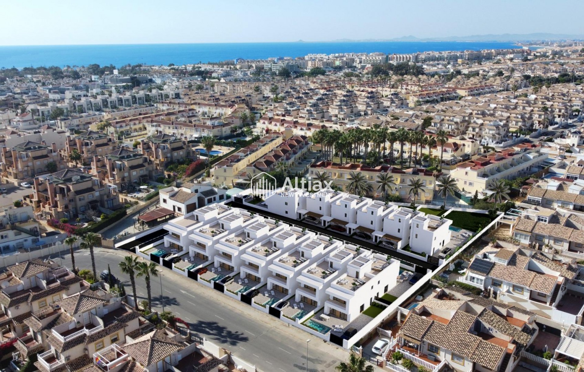 Cada vivienda cuenta con un jardín privado, perfecto para disfrutar del clima mediterráneo. Además, las propiedades incluyen una terraza y un solárium, ideales para relajarse al aire libre o disfrutar de reuniones con amigos y familiares. La presencia de una piscina privada en cada vivienda añade un toque de lujo y exclusividad, permitiendo refrescarse en los calurosos días de verano. La cercanía al mar, a solo 1 km de distancia, ofrece la posibilidad de disfrutar de la playa y de actividades acuáticas en cualquier momento.